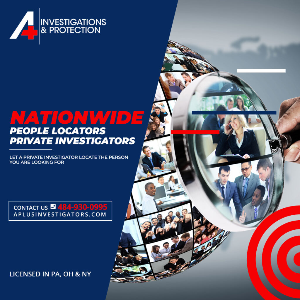 At A+ Investigations & Protection, LLC, we specialize in locating people in Pennsylvania, from Philadelphia to Reading, Harrisburg, and beyond. Whether you need to find a missing relative, track down a debtor, or assist in a legal case, our team is here to help.